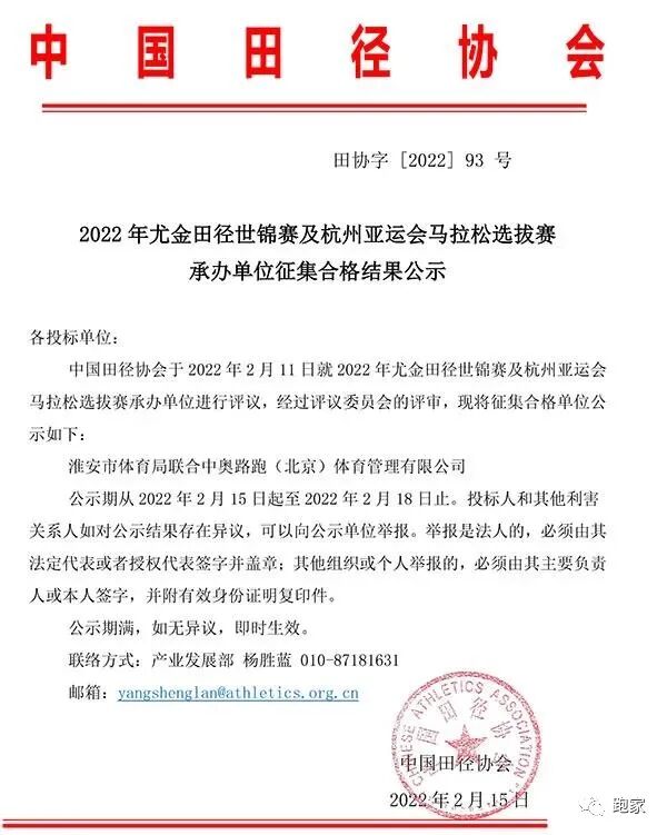上个月,中国田协发布通知,正在征集计划在三月末或4月初举办的尤金世锦赛及杭州亚运会马拉松的选拔赛的承办单位。