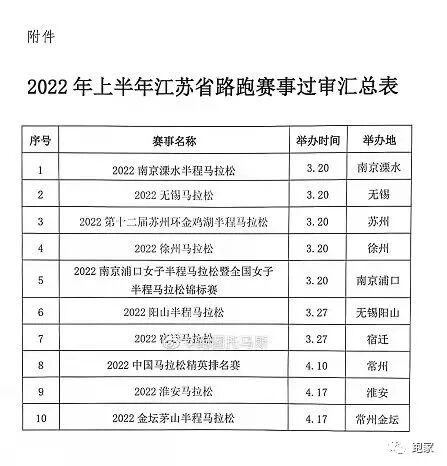 1月份,江苏省体育局一共先公布了一批获得审批的马拉松赛事名单,