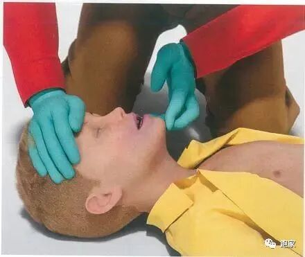 B人工呼吸,在无隔离面罩时,使用口对口吹气,捏住鼻子,您的嘴将患者的嘴完全包住,吹气2次,每次吹气1秒,观察胸部是否隆起。