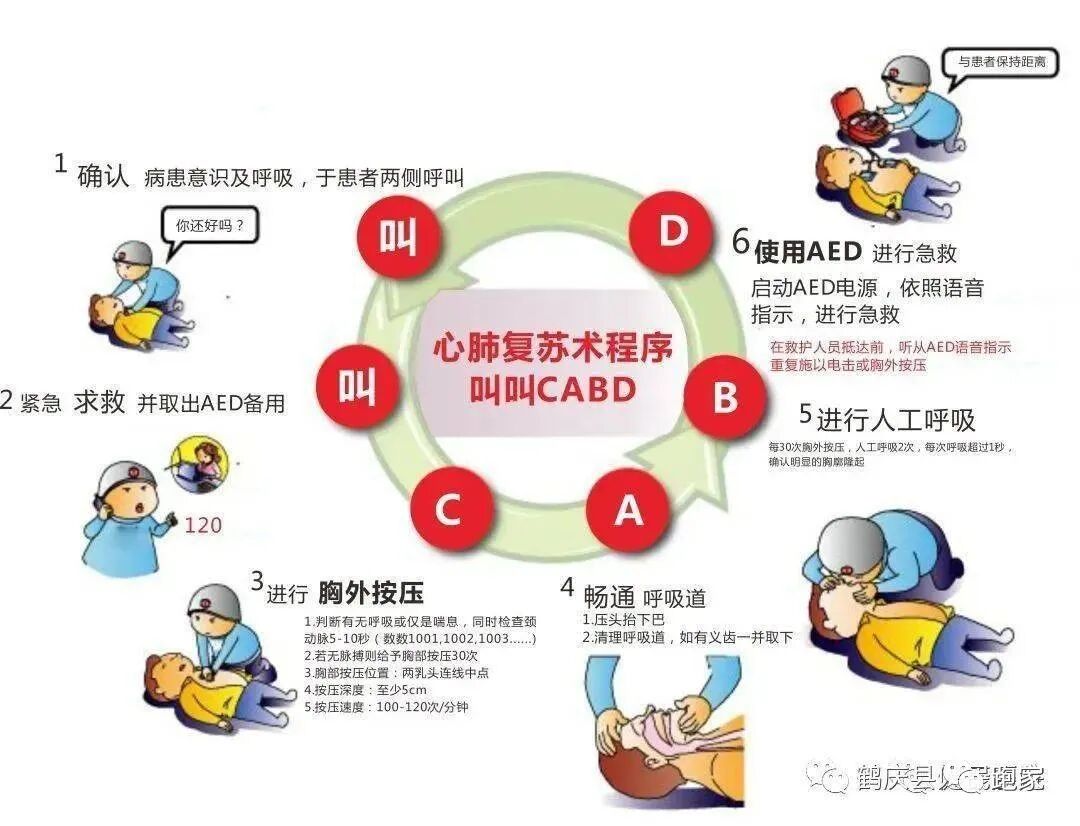 如有自动体外除颤器(AED)到,快速使用AED,按照AED语音提示操作。