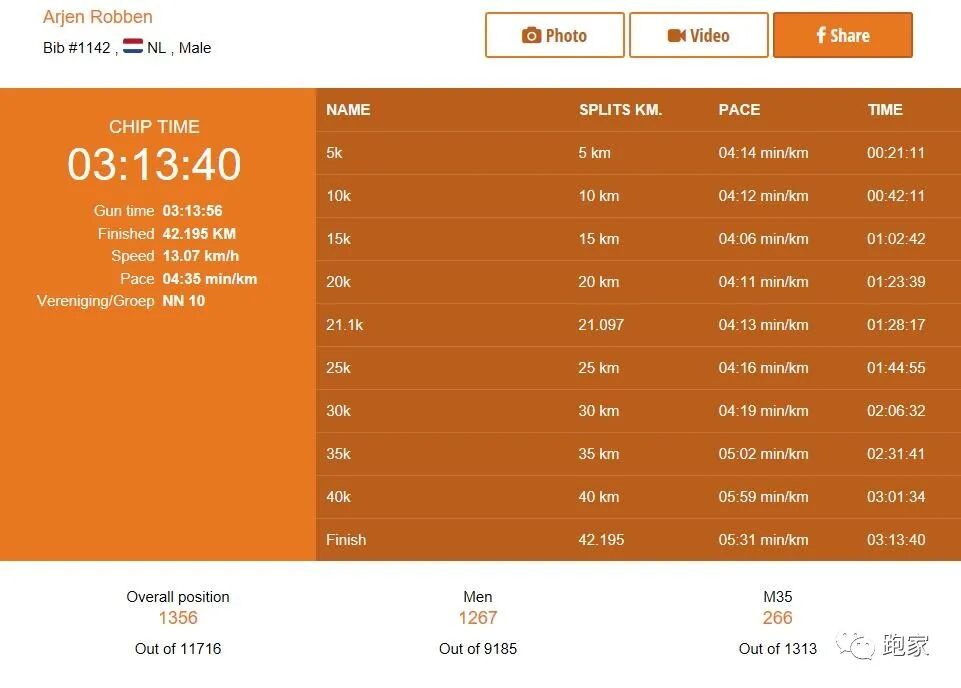 荷兰前足球巨星“小飞侠”罗本在4月10日的2022鹿特丹马拉松上完成首个马拉松比赛,成绩是3小时13分40秒。3月份,他完成半马首秀,成绩是1小时20分37秒。