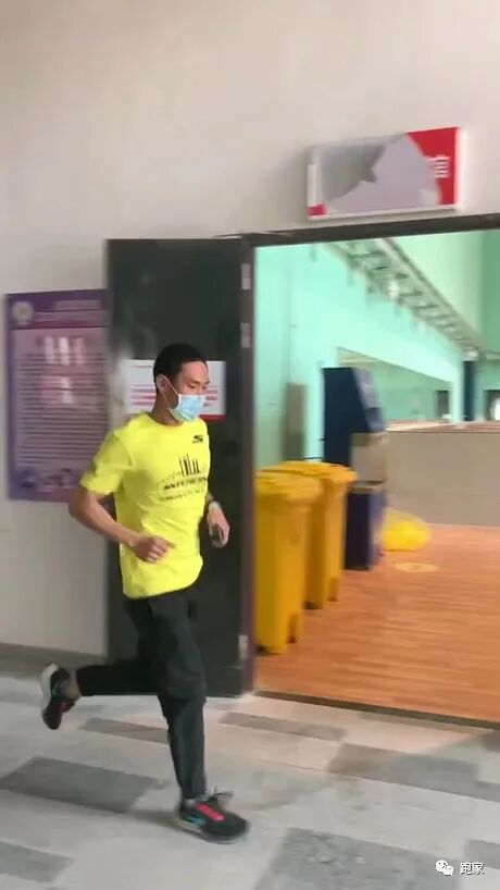 在上海静安体育中心方舱隔离的15天里,他累计跑了170公里,平均每天10公里左右,最长一次跑了一个半马。