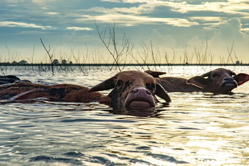 蓝月会游泳,在水里憋了好久的气。不过,这条江很宽阔,江水太深、太急,她根本没有把握游过去。就在她以为自己要溺死在水中时,青牛忽然从水里冒了出来,优哉游哉地游在江心,神速地往对岸靠拢。