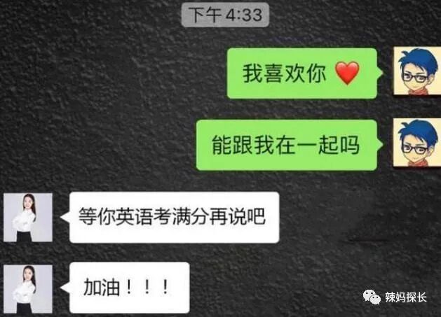 而这位英语老师在收到这样的消息以后,并没有表现得非常突兀,而是非常冷静的回复了一句:“什么时候等你英语考了满分以后再说吧。”