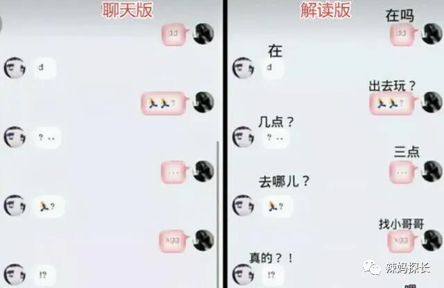 有些孩子可能聊天的内容并没有不想让家长看的秘密,反而是一些开玩笑或者写着玩的话,但由于懒得打字或者不太会拼音、有些字忘了怎么写,于是才会发出一些符号和表情来暗指自己的意思,反正对方能看懂,时间一长,也就知道彼此说什么。