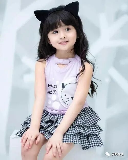 远看是一个专业的模特范儿,近看也不输给成人,圆圆的大眼睛灵动有神,长长的睫毛上下忽闪,虽然顶着浓妆,但不难看出她精致的面容。