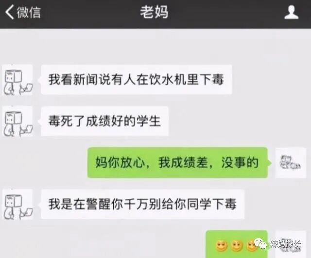 而这位同学则安慰自己的母亲,说自己成绩不好,不会有人对自己下手的。但是没想到的是,母亲担心的不是自己,而是在担心这个同学给其他人“下药”。