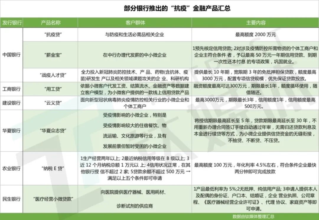 部分银行推出的“抗疫”金融产品汇总(整理/钛媒体内容中心)