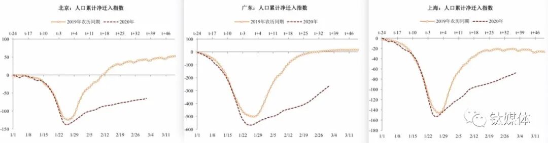 北京、广东、上海的节后人口“净迁入”分别仅为去年同期的44%、61%和72%,数据来源:百度地图