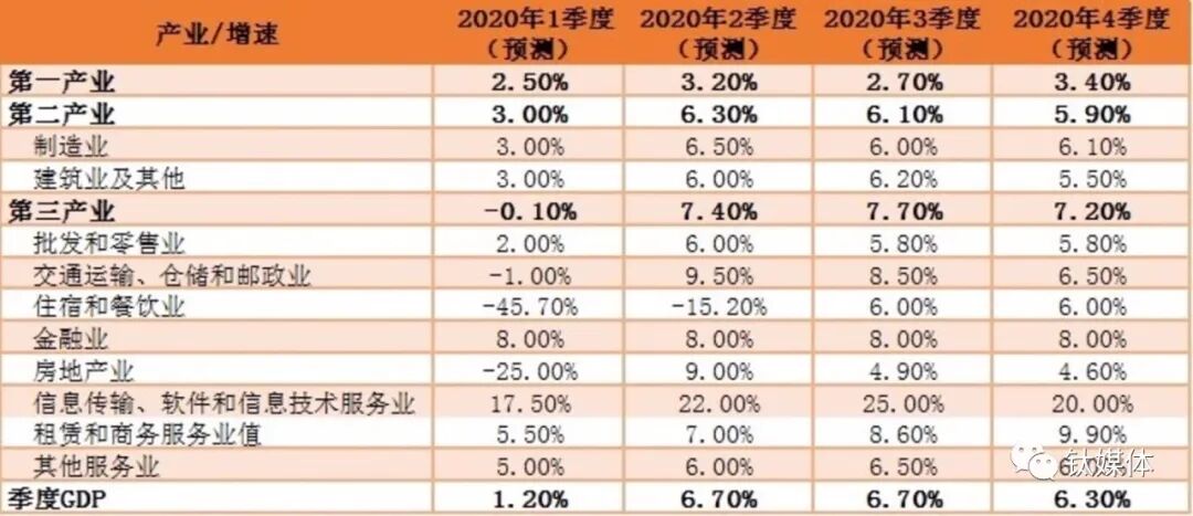信息传输、软件和信息技术服务业受冲击较小,还有很多创新性增长,预计一季度增长17.5%。金融业、其他服务业受疫情影响也比较小。