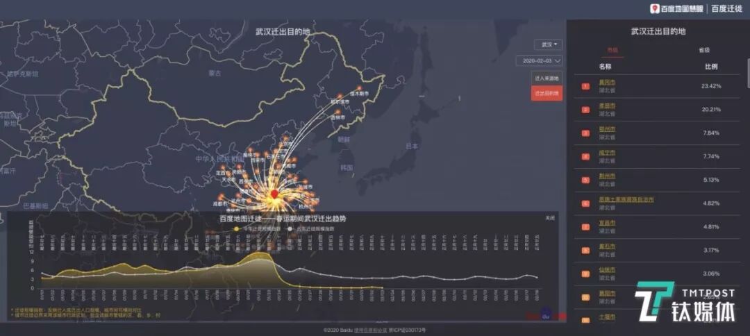 也就是说,今年从武汉出城的人数远远超过去年同期。而且,在武汉封城前两天,整体武汉人群迁出指数远超过去年,很多潜在病患逃出武汉城区,让“行走的病毒”蔓延到世界各地,将疫情管控难度大大增加。