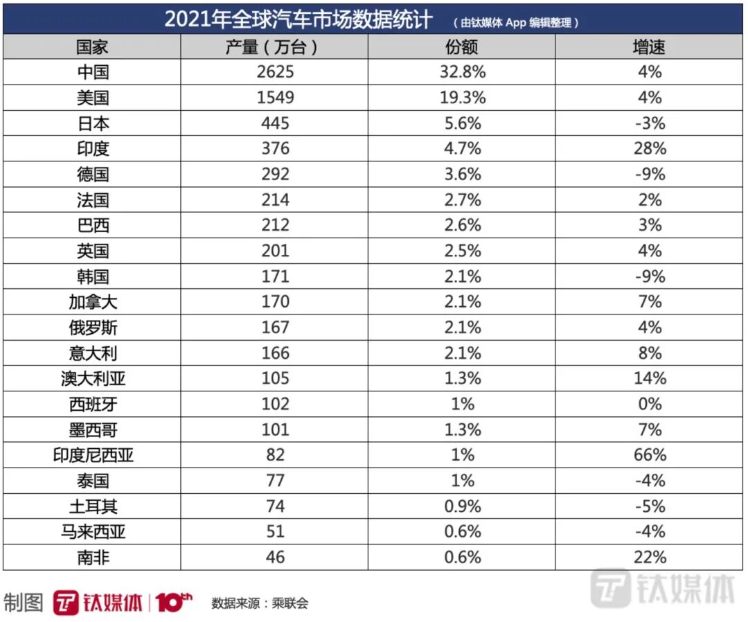 在全国汽车生产总量数据中,上海在2021年占比为10%,仅落后广东两个百分点。在新冠疫情开始之前,上海甚至多年蝉联汽车产销量全国冠军。