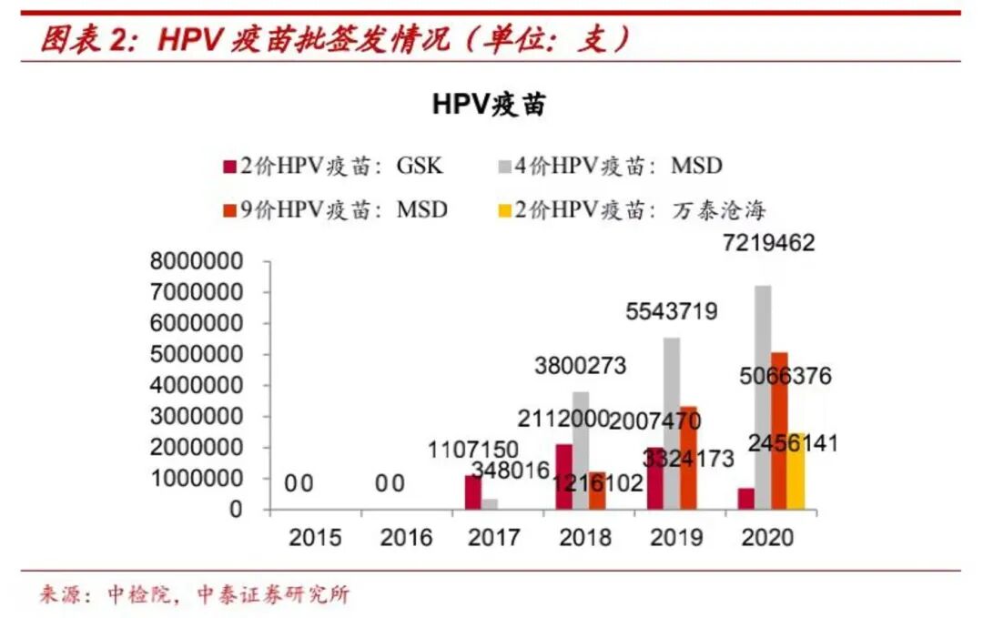 截至2020年度的HPV疫苗批签发数据(来源:中泰证券研究所)