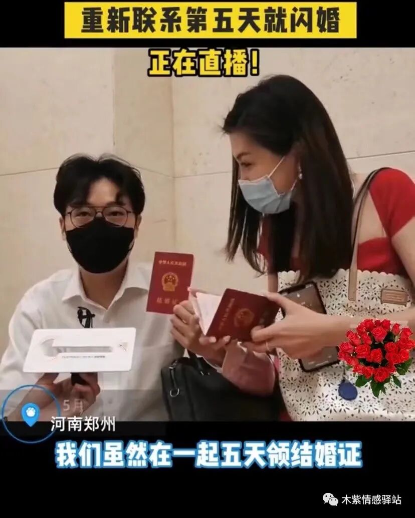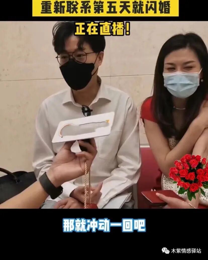 没想到,这次两个人却相谈甚欢,很是投缘,于是就出现了开头那喜庆而又浪漫的一幕,两个人相识5天后就决定闪婚,在520这天去民政局领了证。
