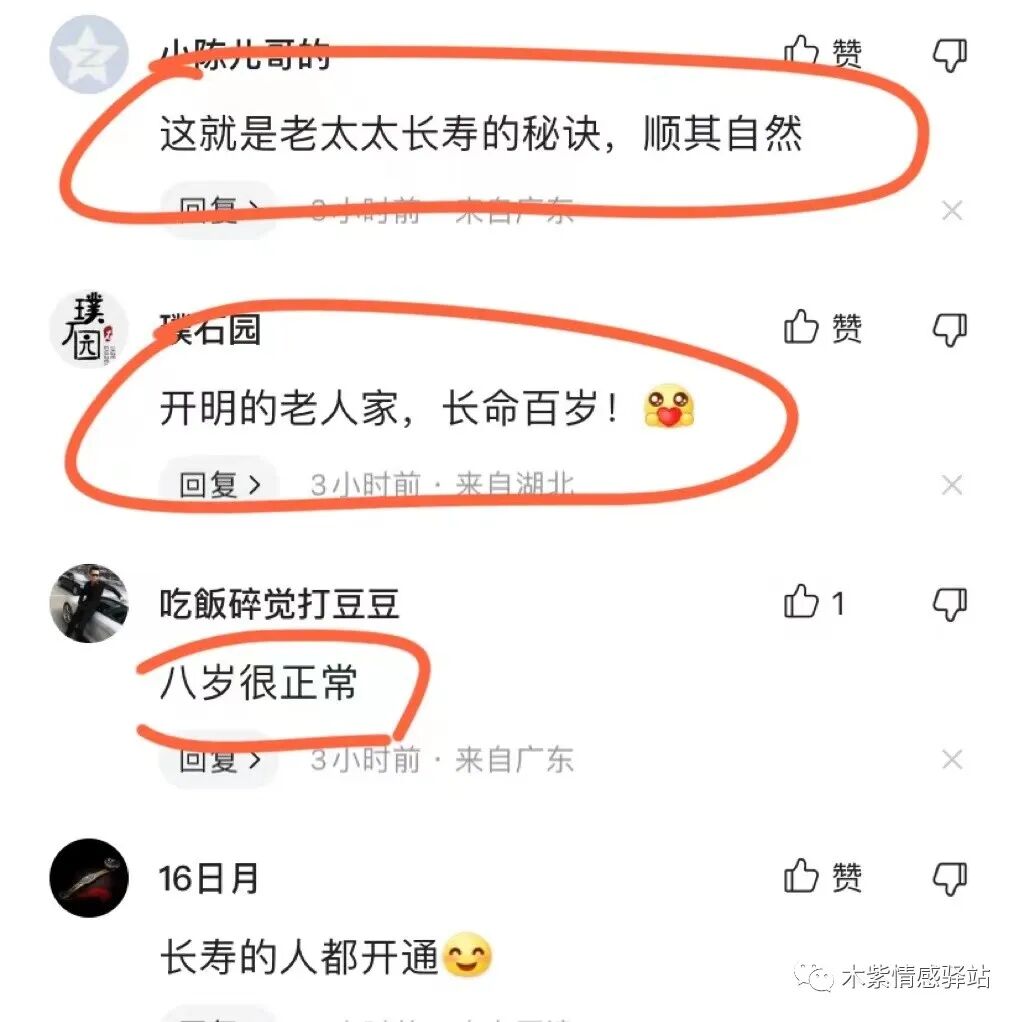 也有网友说,这就是奶奶活到百岁,长寿的原因,心胸开阔,顺其自然。