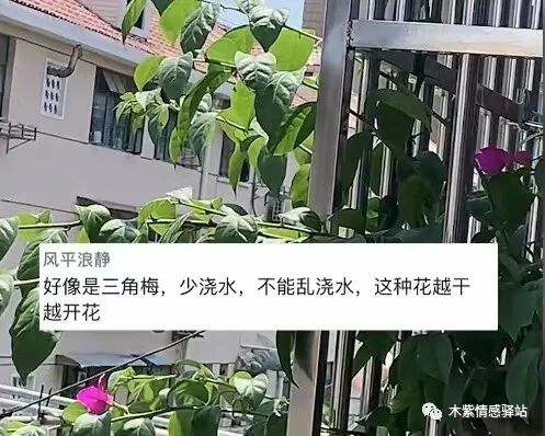 原来,有一位养花经验丰富的网友告诉她说,邻居家种的这种花,名叫三角梅,这种花耐旱不喜水。这个花越旱越好,开的花儿越多,如果浇水太勤的话,反而不开花,只长绿叶了,甚至还会有被淹死的可能。