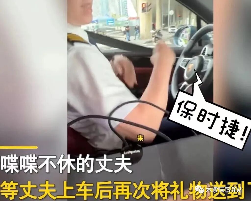 说着男子坐上驾驶座位,扣上安全带去开车,这时,有眼尖的网友看到了保时捷的豪华车标。
