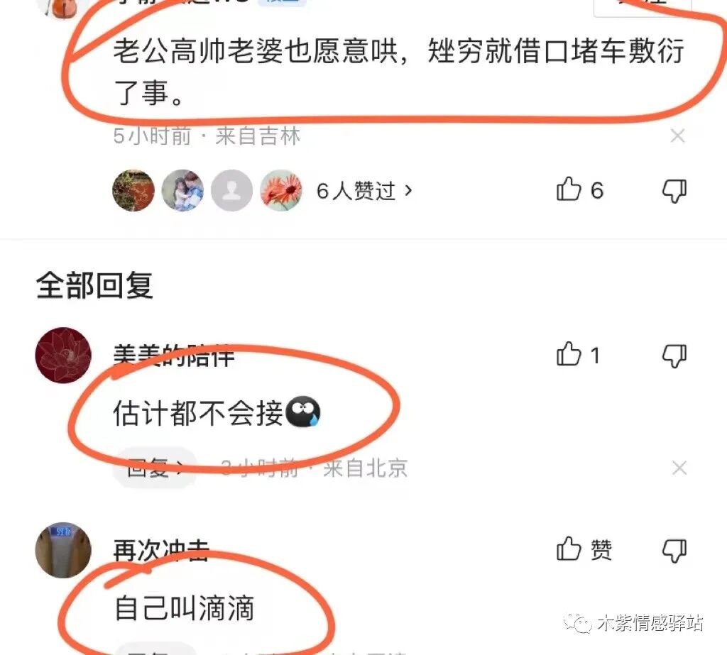 网友宁静致远说的更是好笑,他说老公高富帅,老婆也愿意哄得,要是矮矬穷的话,估计媳妇就会借口堵车,懒得去接。