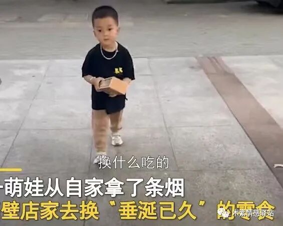 小朋友奶声奶气地回答:“我拿烟来,换好吃的。”