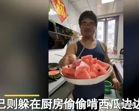 妻子想要偷偷给丈夫拍视频,记录一下日常生活,这时,她突然发现了一个小小的秘密:只见丈夫把西瓜切成一块一块后,他又拿起小刀,把每块西瓜上面最甜的那部分西瓜心,又小心地削了下来,都精心地放在一个盘子里。