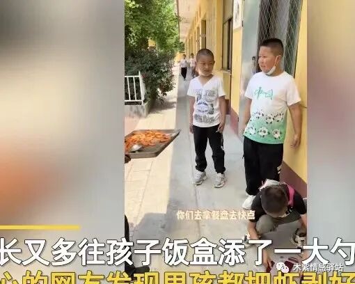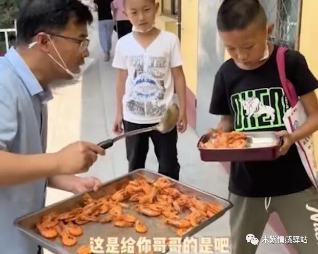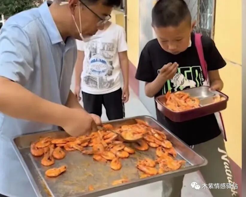 校长拿起饭勺轻轻地敲了敲孩子的餐盘,对他说:“这是给你哥哥的是吧?我看着你把那虾仁给我吃了!”