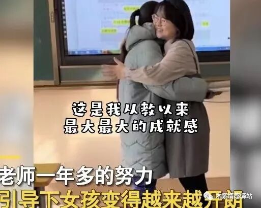 老师说,望着孩子的进步和改变,她从内心深处感到欣慰无比,她说这是自己从教以来最大最大的成就感,她给了孩子一个大大的温暖的拥抱,眼含泪花,希望这个美丽的女孩,自信,开朗,学业有成,眼中有光,一生被爱!