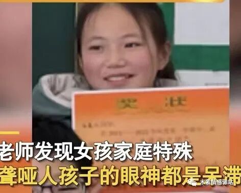 老师觉着这个孩子有点儿自闭,经过家访和了解,老师得知,原来女孩 的爸妈都是聋哑人,家庭很困难,面对这样的家庭困境,女孩从内心深处感到自卑,甚至连她的眼神都是呆滞的。