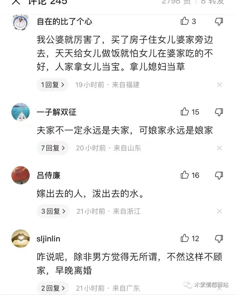 还有网友说,夫家不一定永远是夫家,但是娘家却永远是娘家,这个不会变。