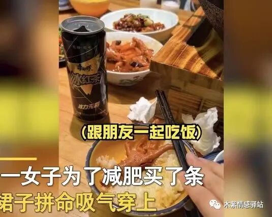 接下来他们外出和朋友聚餐,看到那些琳琅满目的美食,女子立马就后悔了。