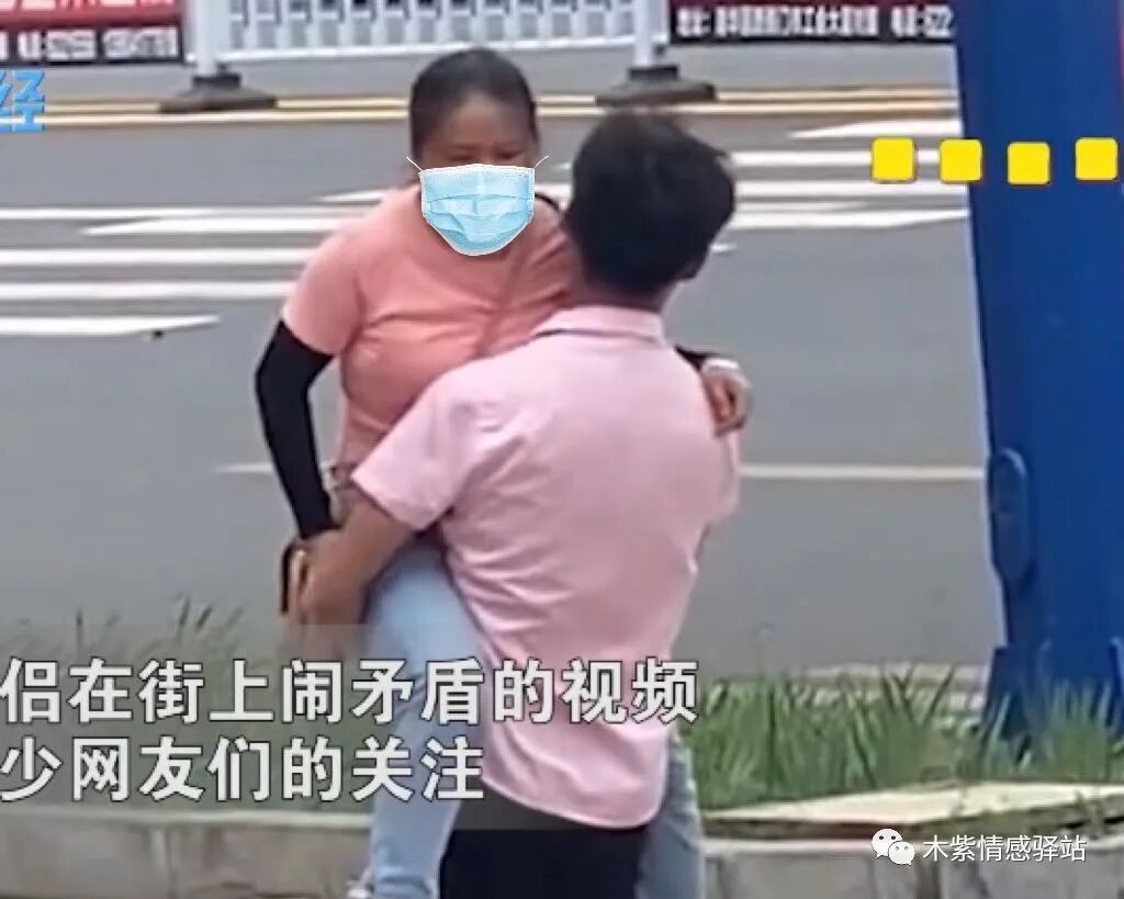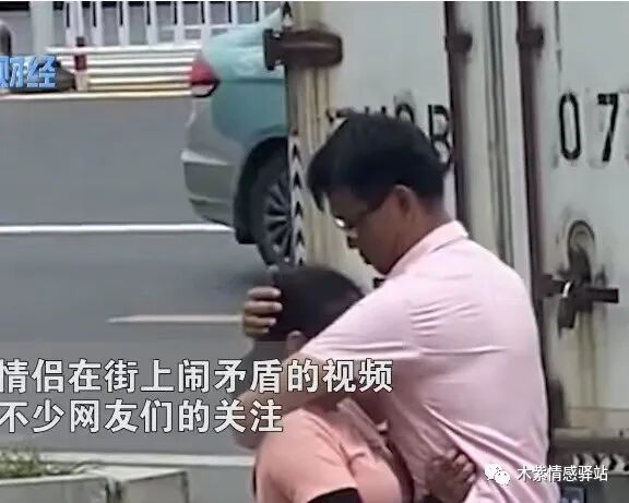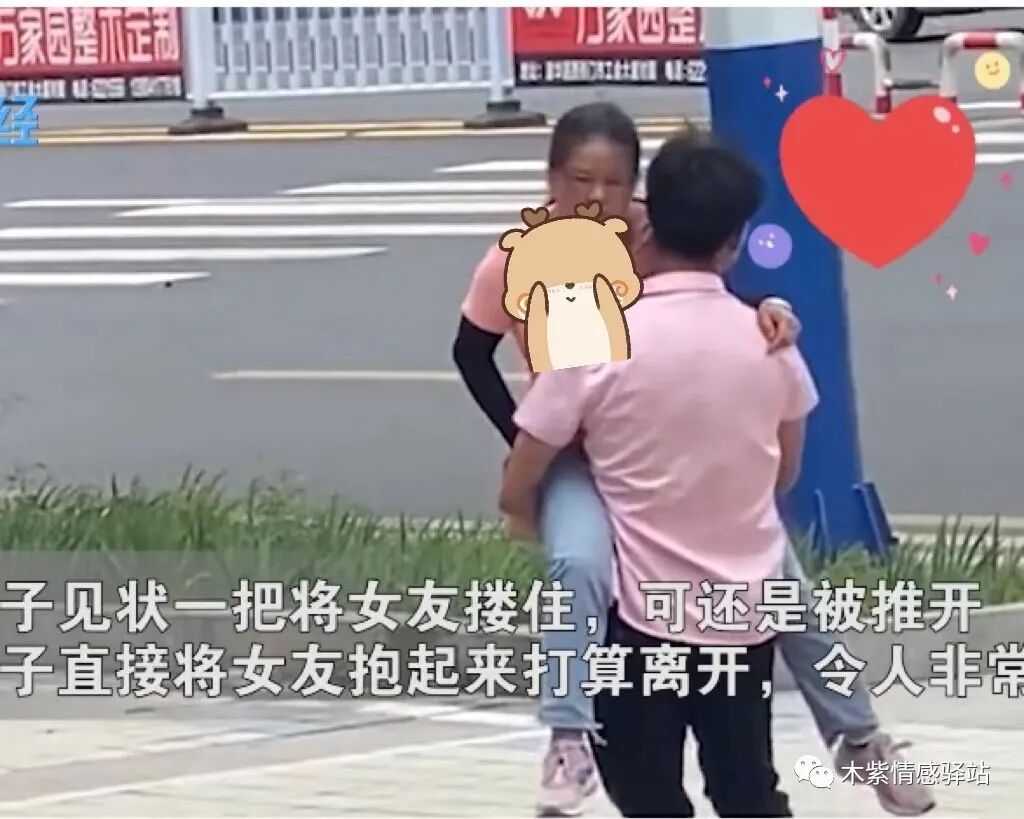 看到女友终于露出了笑脸,男子开开心心地抱住女友向前走去。
