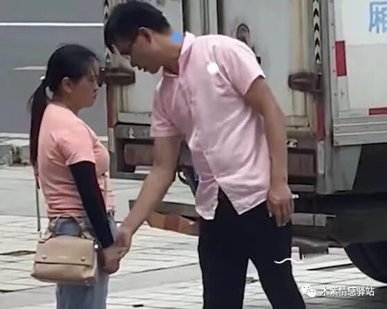 他的面前站着一名女子,女子扎着长长的马尾,穿着粉色紧身上衣,戴着黑色的防晒袖套,搭配浅蓝色牛仔裤,女子看起来心情不太好,面色阴沉,神情憔悴,眼眉低垂,不言不语。