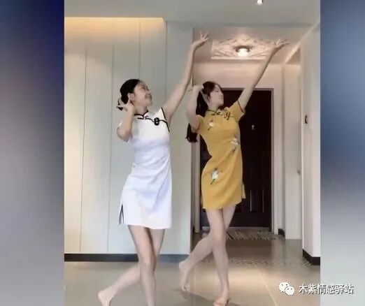 后面的女子则穿着黄色旗袍,她扎着高高的马尾,个头比白色旗袍女子似乎还要高一些,但是,明显看得出来,她的腰身和动作,都没有前面女子看着舒服。