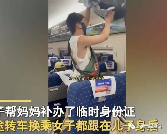 好事多磨,出发前一天女子的身份证丢失了,儿子帮妈妈申请了临时身份证,她说儿子长大了,一路上不管是带行李还是中途转车换乘她都跟在儿子身后就行,儿子是个大暖男,很热心,在车上还会帮陌生叔叔取行李,这让她觉着非常欣慰。
