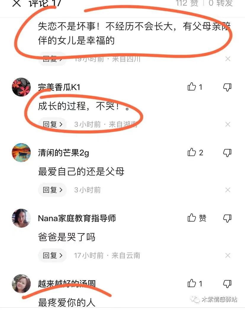 下面这位中年老爸,在看到女儿失恋大哭后,内心五味杂陈,他忍住内心痛楚,暖心安慰女儿,话语很朴实,但是句句打动人心,让网友们感慨:世上最爱我们的人,还是父母!
