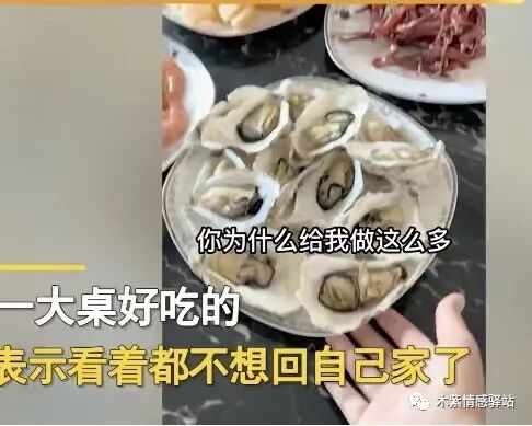 中午吃饭的时候,桌上摆满了丰盛的菜肴,小伙子说,看到这么多好吃的,真的都不想回自己河南的家了。他满怀深情地对岳母说:辛苦了,妈!