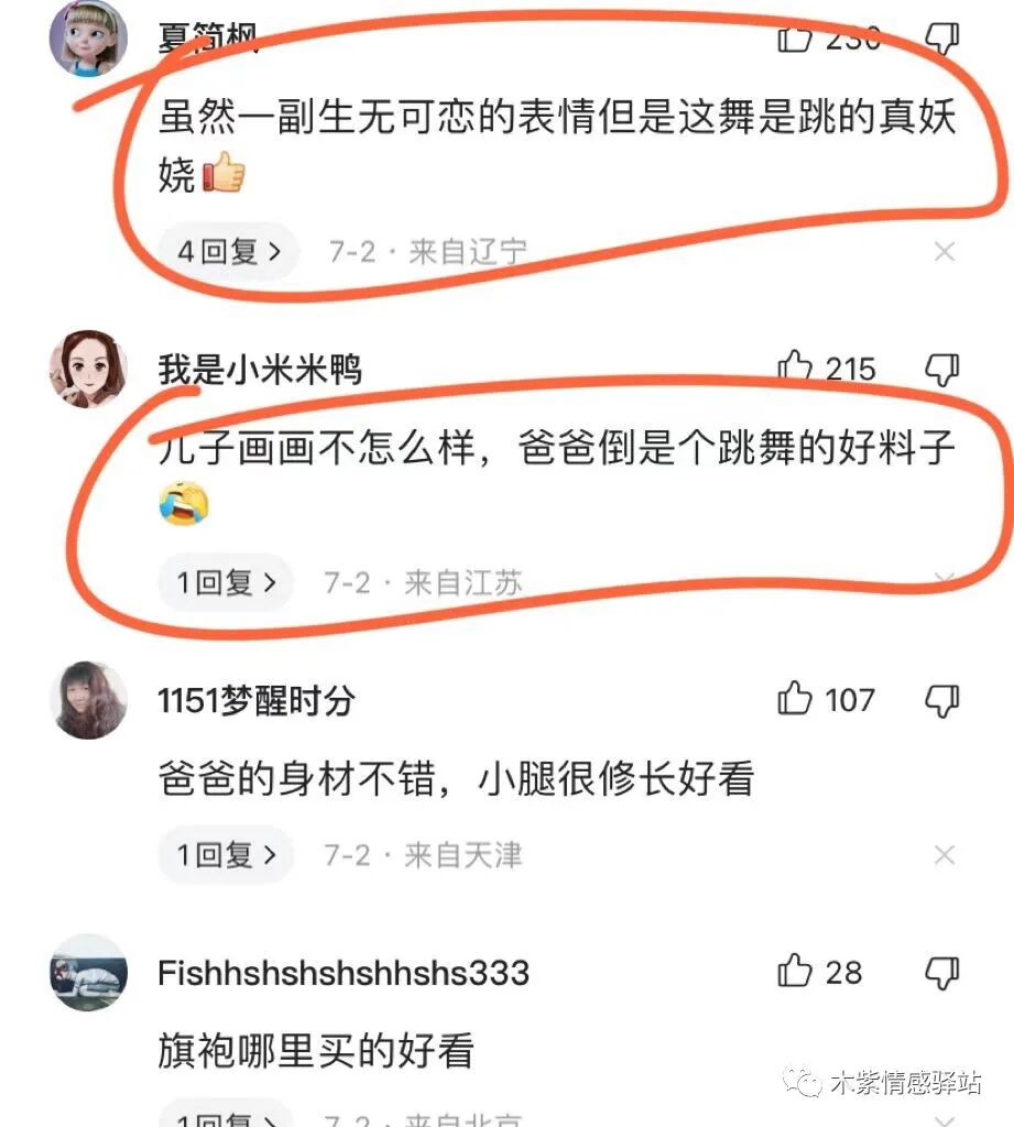 网友我是小咪咪鸭则说,别看儿子画画不怎么样,爸爸倒是个跳舞的好苗子,没准儿子成不了画家,爸爸成了优秀的舞蹈家。