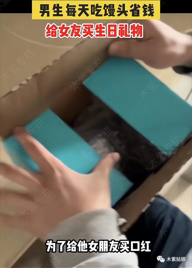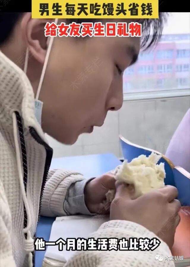 这位网友说,这个小伙子是自己的同桌,他是个俭省节约的孩子,每月的生活费并不多,而他的女朋友快要过生日了,想要一只昂贵的口红,男生听说后,为了给女友一个生日惊喜,于是每天偷偷啃馒头,从生活费里面节约出这么一笔钱,购买口红,送给女友。