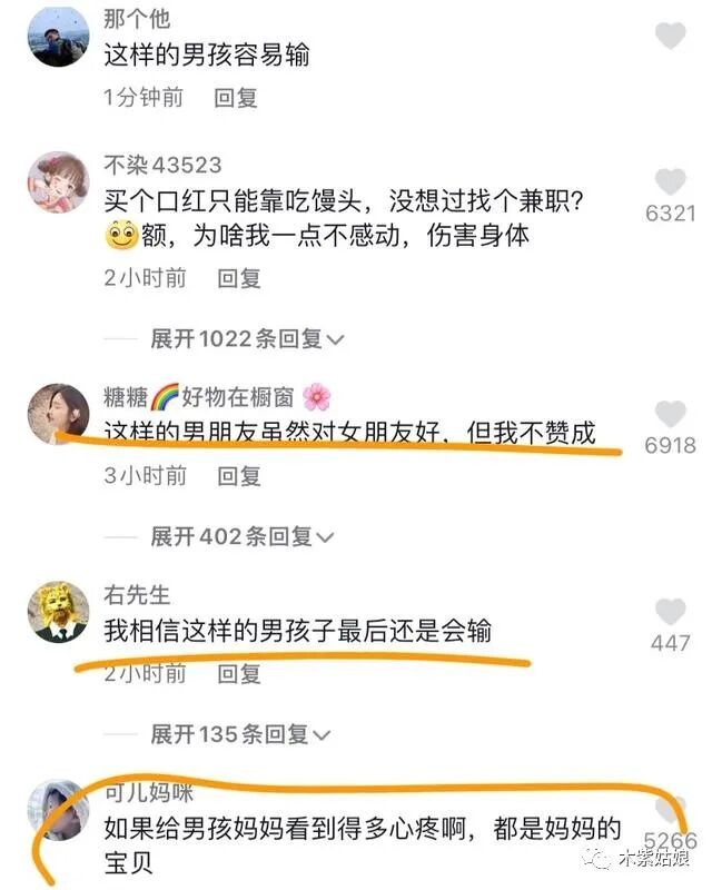 网友的意思是,小伙子在这段感情中,爱的太卑微,失去了底线,怎么能为了一支口红,甚至不惜牺牲身体健康,不吃蔬菜和水果,肉食,只吃白馒头,要知道,他现在还处于身体发育阶段,这样的做法,对 他的身体来说,是很不健康的。