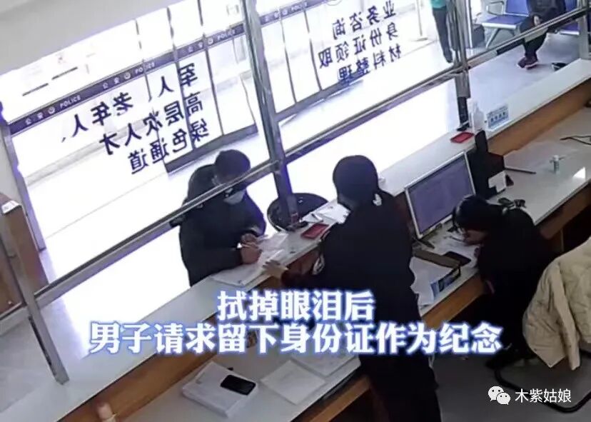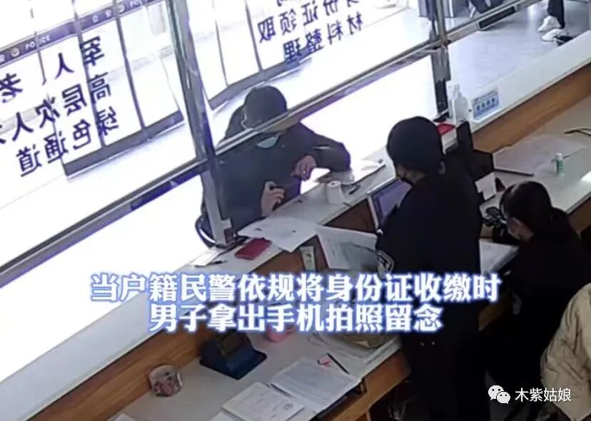 近日,一名男子在家人陪伴下,到泉州市惠安县螺阳所为亡妻注销户口,当户籍民警依规将身份证收缴时,男子拿出手机拍照留念。