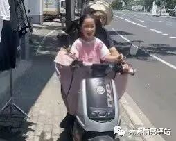 女子说,骑车的男子是自己的老公,车上站着的小女孩是自己的妹妹,妹妹还在上幼儿园,是个活泼可爱的小姑娘。