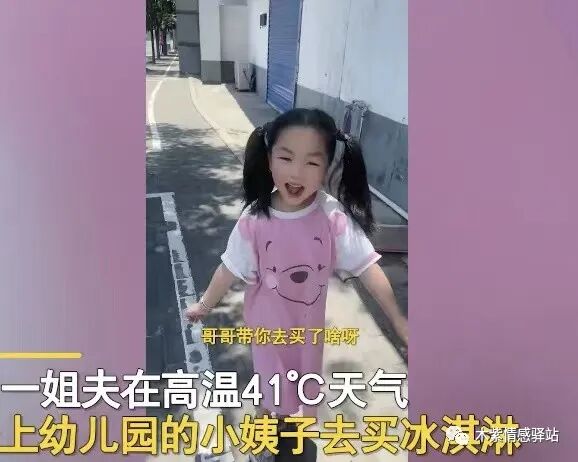 一位年轻的姐夫,非常宠爱家里还在上幼儿园的小姨子,高温41度天气,骑电车带她去买爱吃的冰淇淋,姐姐看到后,忍不住慨叹:哎,简直就是宠成了女儿一般!