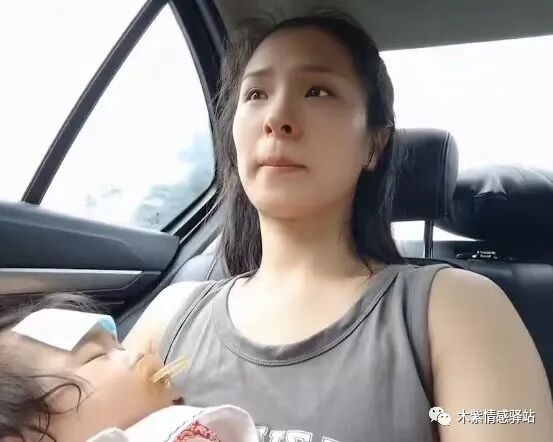 女子留着披肩长发,面容姣好,秀丽,她穿着浅灰色的吊带上衣,额头的汗水不时地滴落下来,汗水混合着泪水,她无暇顾及,紧抿着嘴唇,满眼忧伤注视着怀里昏睡的宝宝。