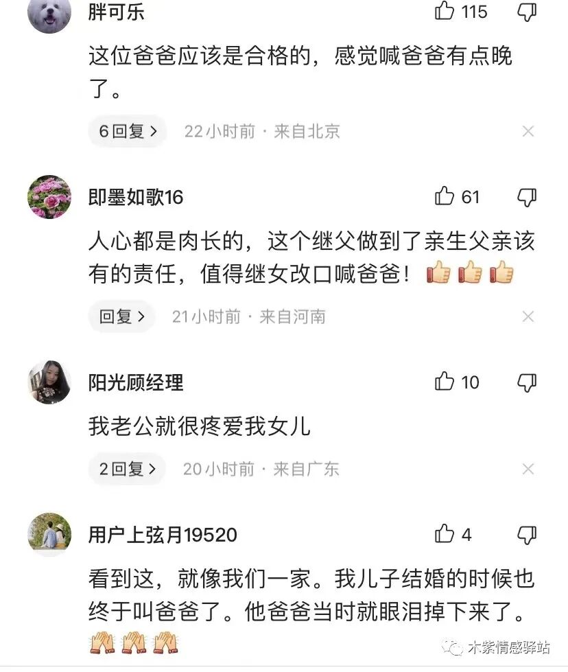 网友们看到这里,纷纷忍不住泪崩,有人感慨:继父一定是尽到了父亲的责任,让女儿感受到了满满的父爱!