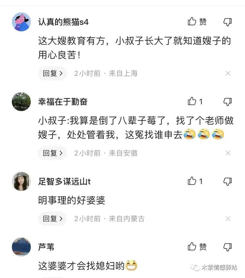 网友们看到这里,纷纷笑喷,有人为这位嫂子叫好,说婆婆一定把儿媳好好供着,这样可以省去好多年教育孩子的费用,儿子,孙子,都有人管了,多省心。
