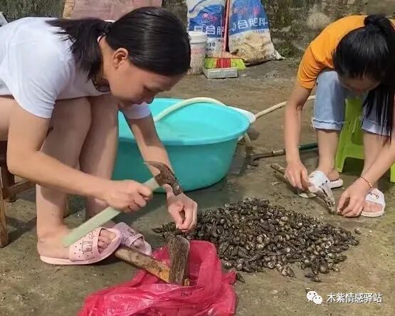 画面中,这是一处简朴宁静的乡下山村,院子里简单的土灶支起了锅台,锅里面煮着香喷喷的鸡肉,还有家乡的特产麻辣螺丝,沸腾而出的香味儿扑鼻而来,让人垂涎欲滴。