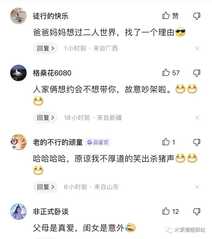 女儿被惊呆了,忍不住调侃他们说:你们吵架吵这来了啊?