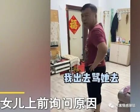 爸爸看着很气愤,也不答话,随后想想估计还是气不过,对女儿扔下一句:我得出去骂她去!随后穿上鞋,急匆匆离开家门。