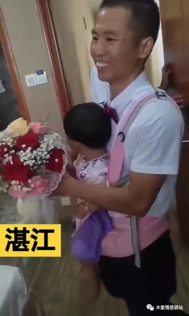可是,令人感到奇怪的是,男子身上绑了一个粉丝的背带,胸前竟然还背了一个可爱的宝宝!