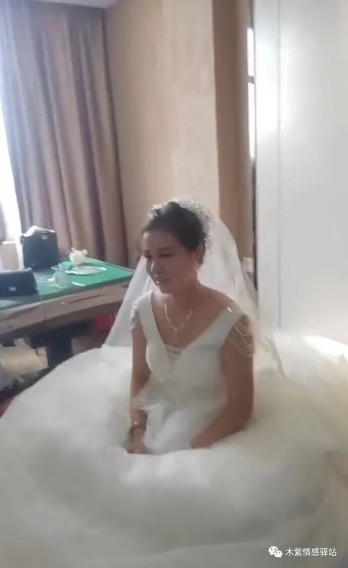 房间内,围满了几位漂亮的伴娘,个个脸上洋溢着欢喜的神色,而新娘子,穿着白色的婚纱,端坐在大床上,一脸平淡,面无表情地望着面前的新郎,还有他怀里的宝宝。