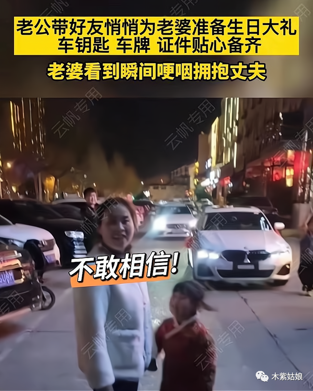 不过,下面这位老兄就很会做事,在妻子的生日时,偷偷带着一帮兄弟给她买了一辆,她心仪已久的豪车,这样的大手笔,自然让老婆在开心不已的同时,感动万分,她甚至当众落泪,扑进老公怀里,紧紧地抱住了他。这样的场景,让很多网友羡慕又感慨万分,